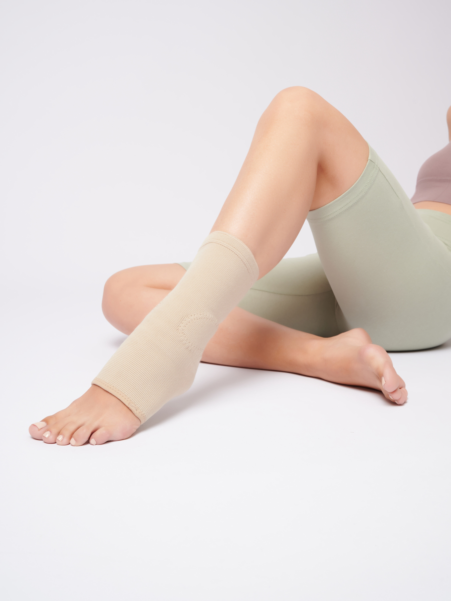 - Вставка из перфорированного неопрена анатомично облегает ахиллово сухожилие над пяткой и медиальные, латеральные связки лодыжки