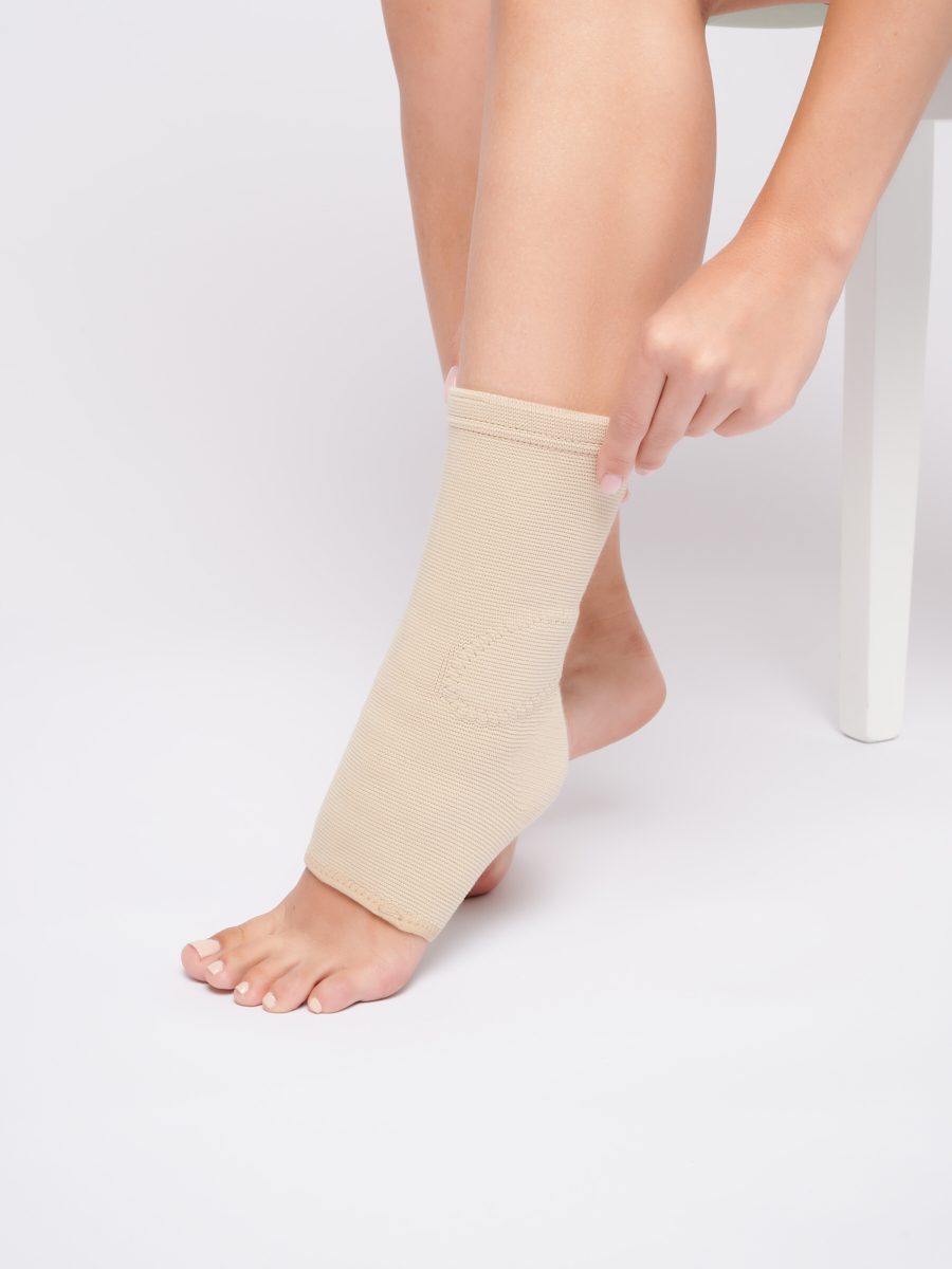 - Бандаж тонкий и компактный, удобно использовать практически с любой обувью