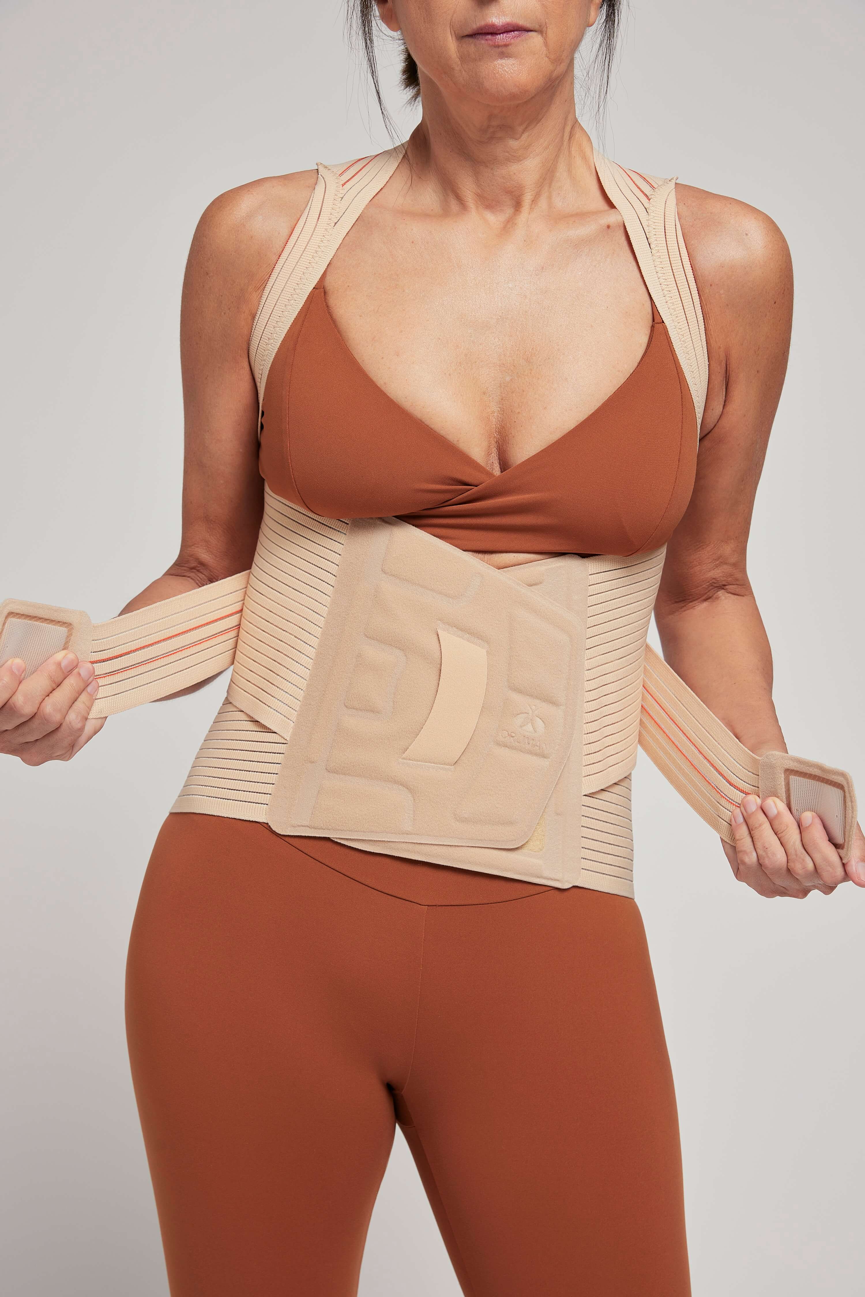 • Плотный материал передней стенки не позволяет передней части корсета скручиваться, что особенно часто бывает с мягкими корсетами, в положении сидя. Не перетягивает область живота.