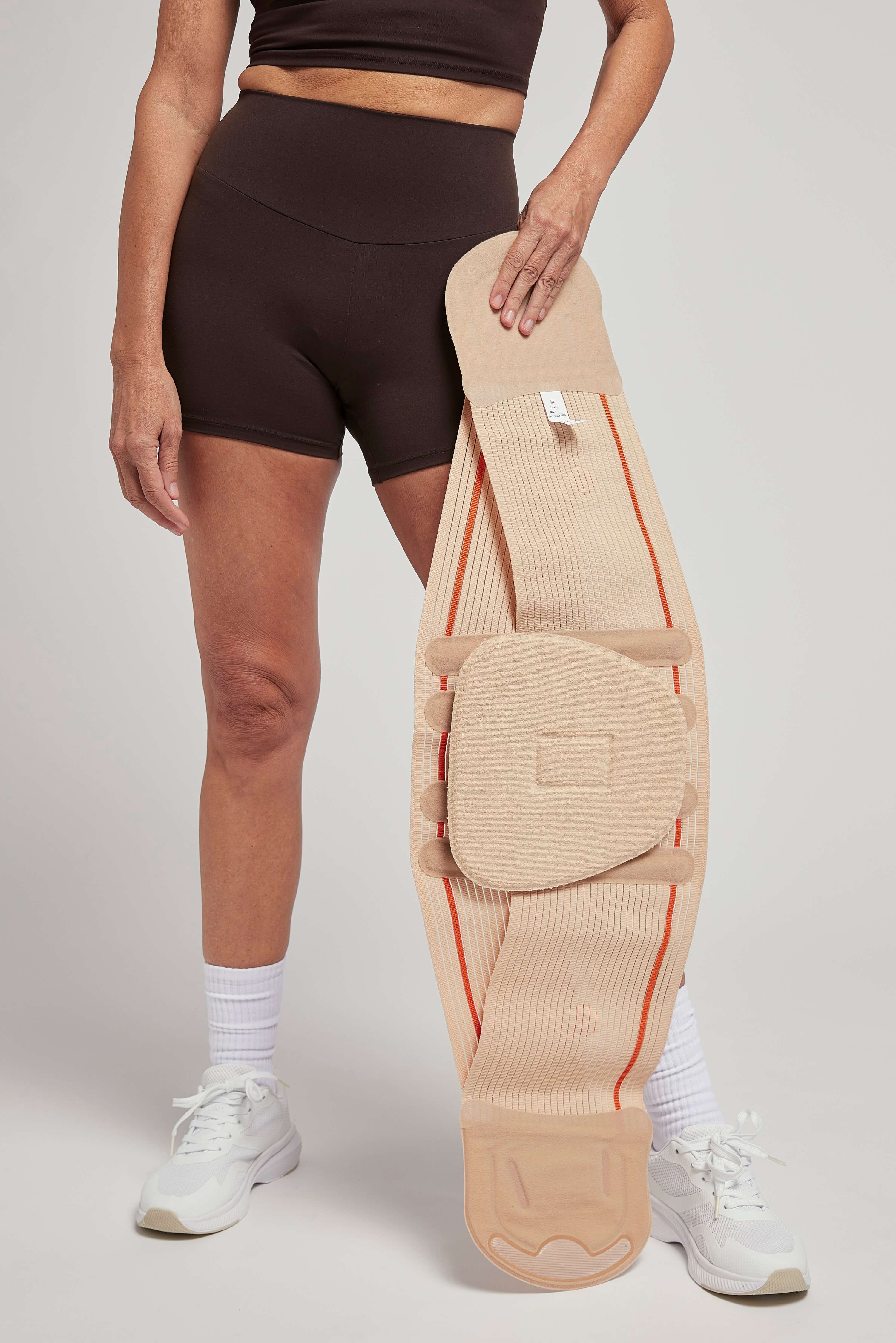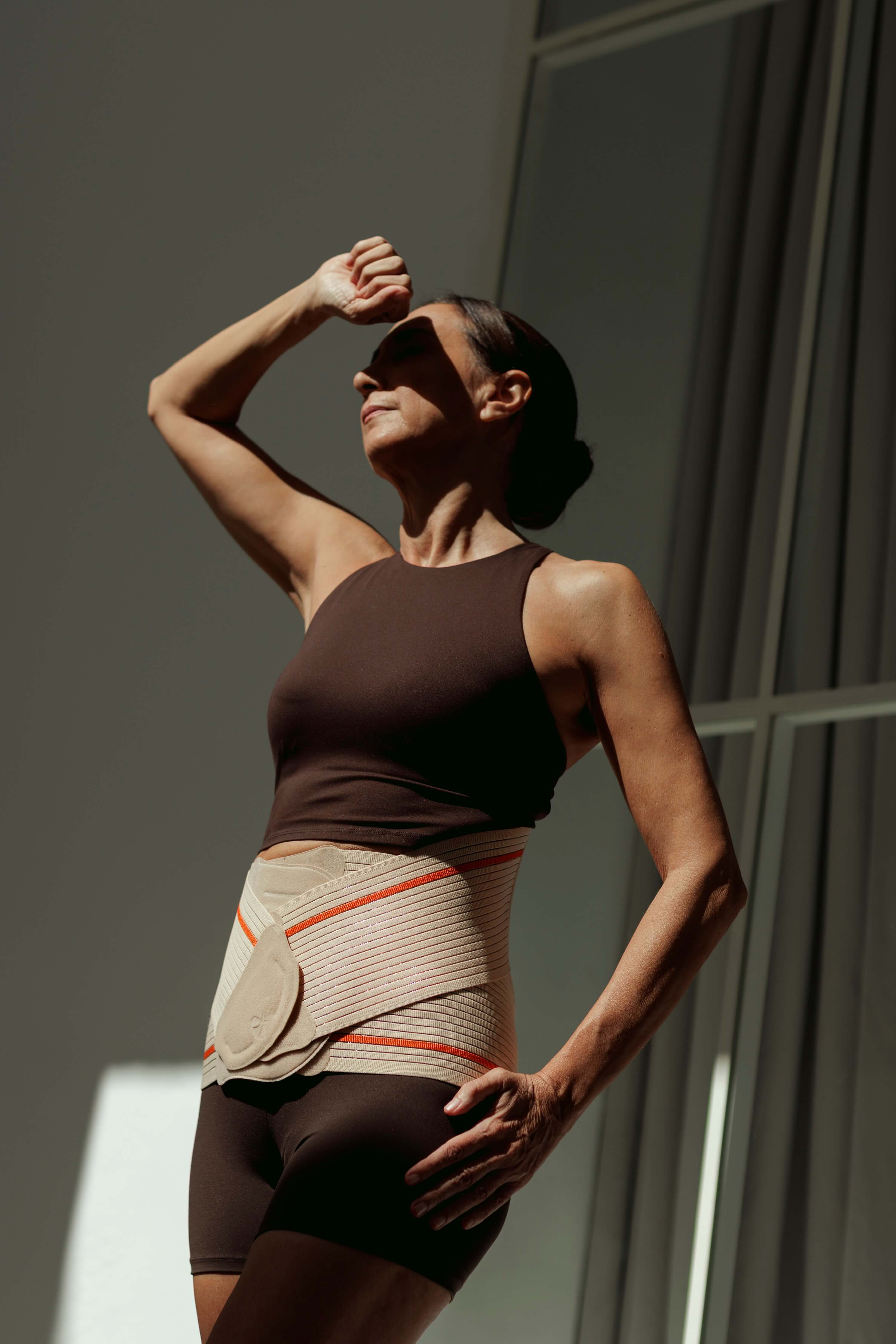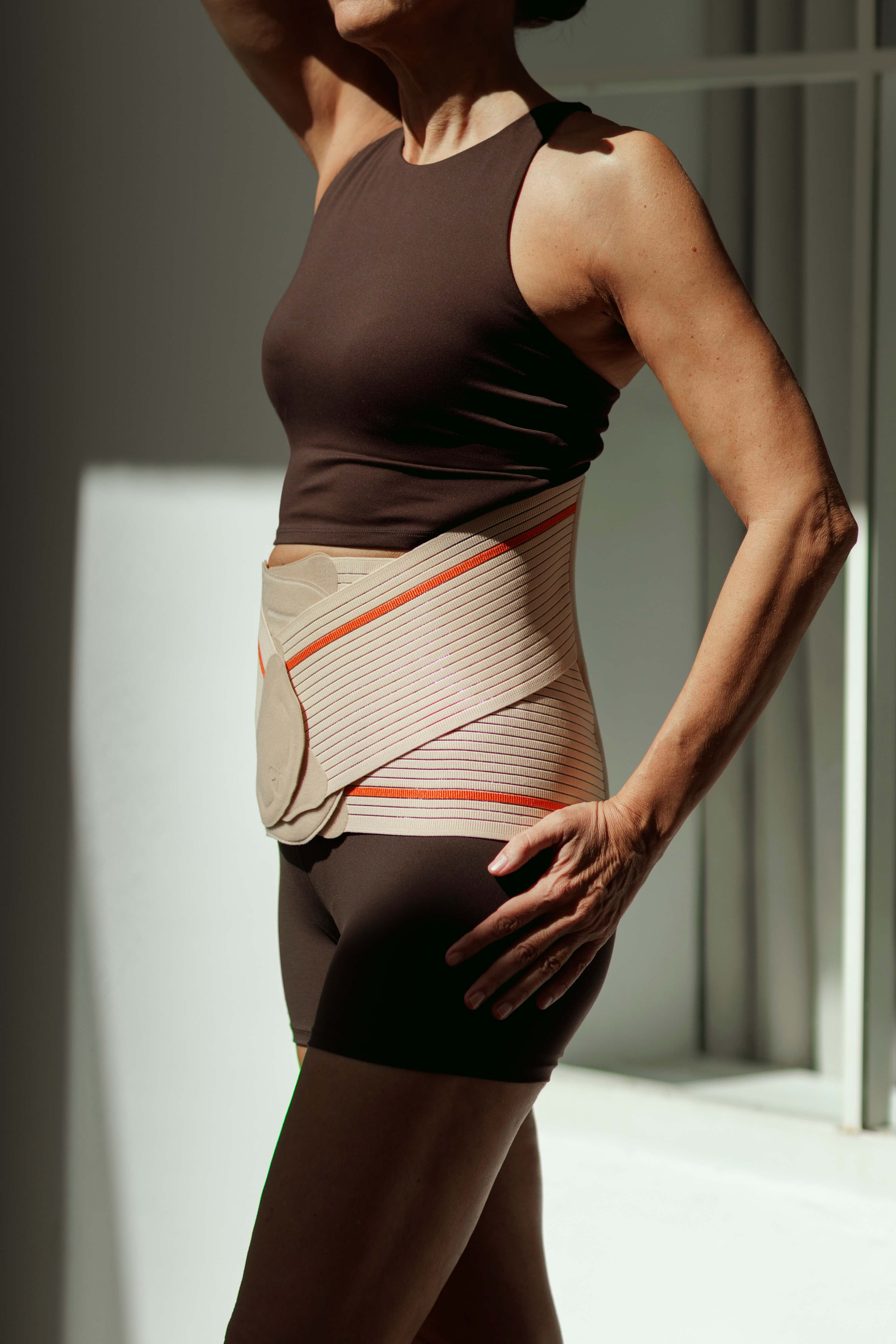 - Эластичные ремни подтягивают живот, активизируют тонус глубоких мышц живота, за счет чего восстанавливается внутрибрюшное давление. Органы брюшной полости и малого таза возвращаются в естественное положение.