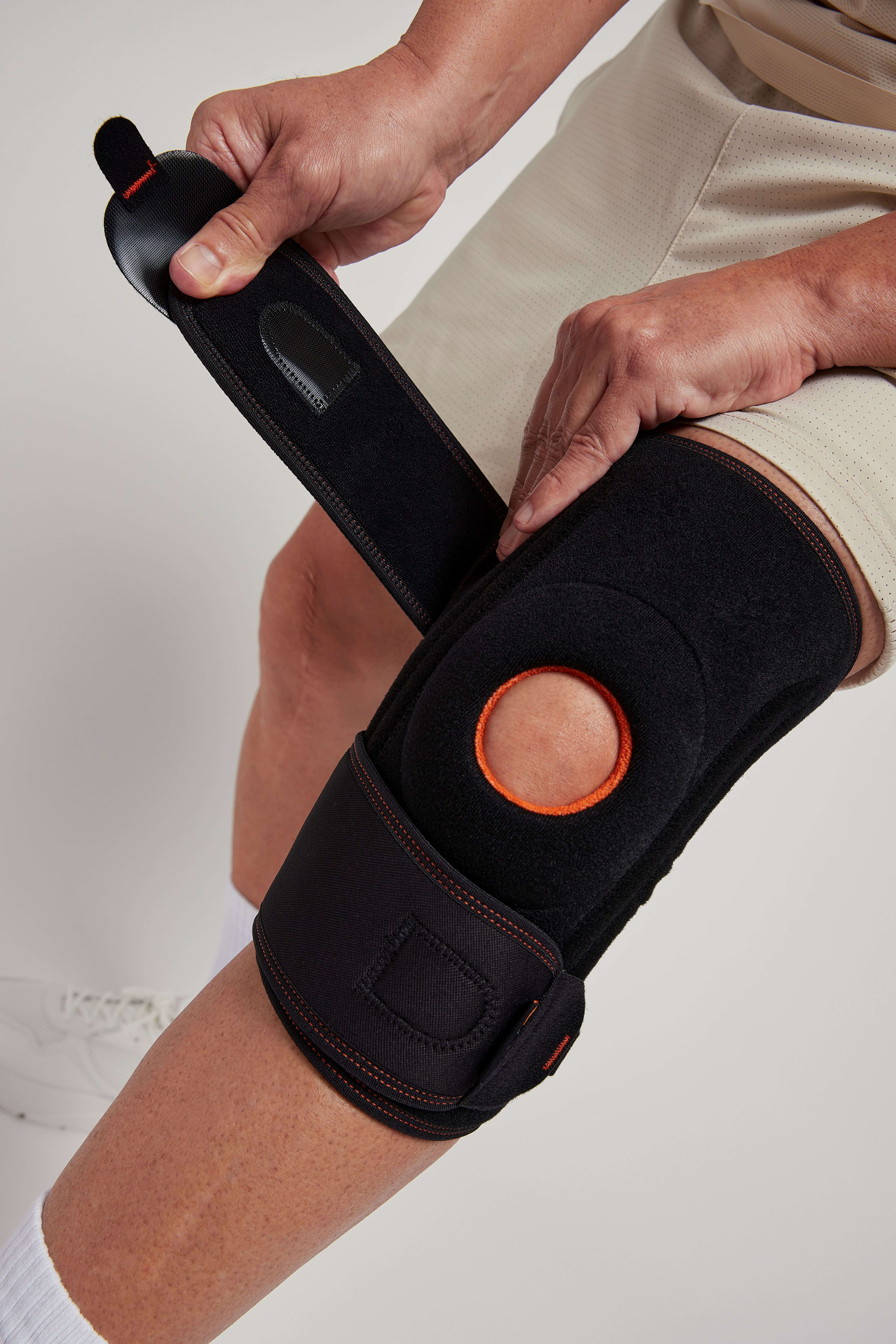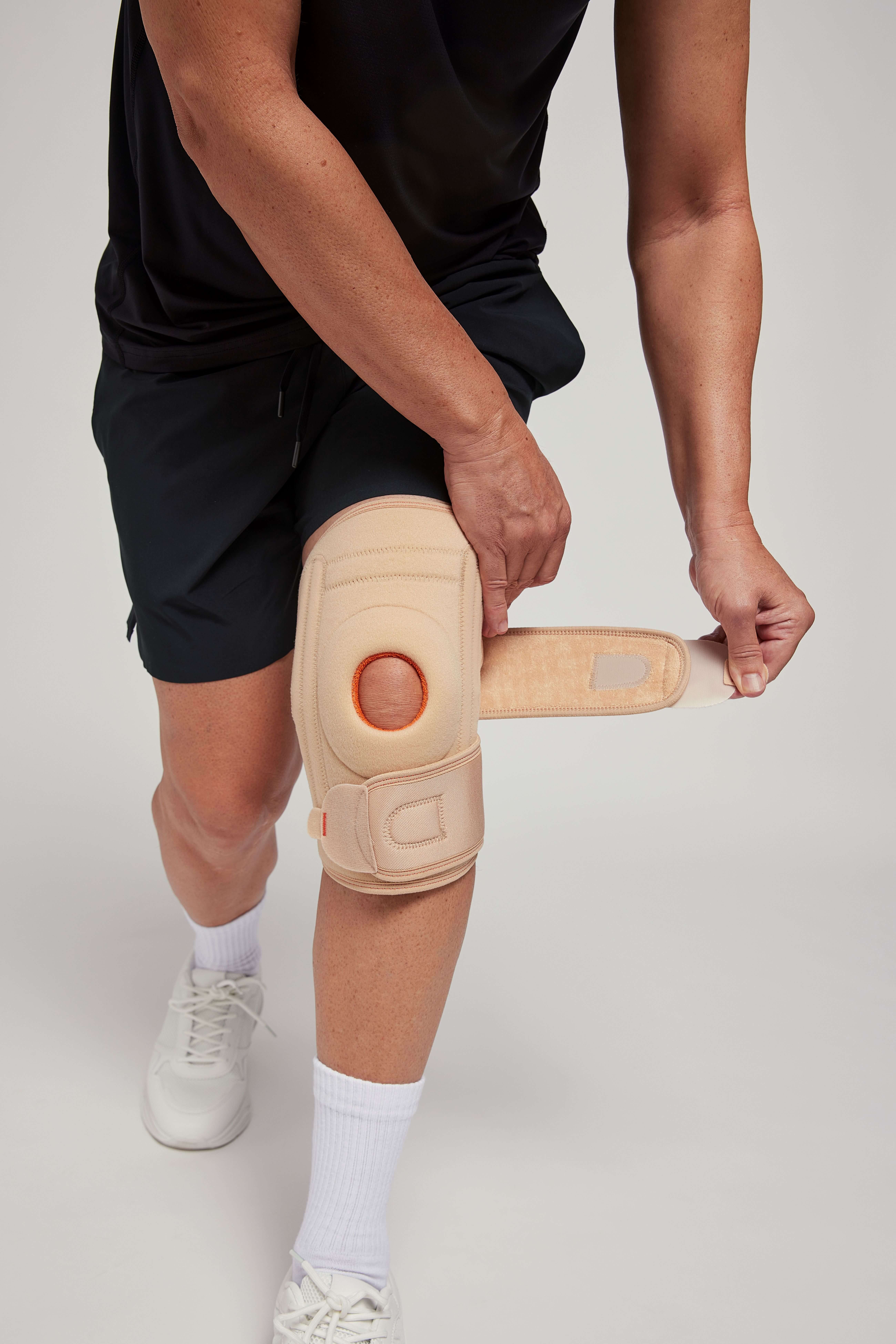 - Кольцо обеспечивает эргономичную посадку на коленном суставе, что удерживает ортез в правильном положении в течение дня