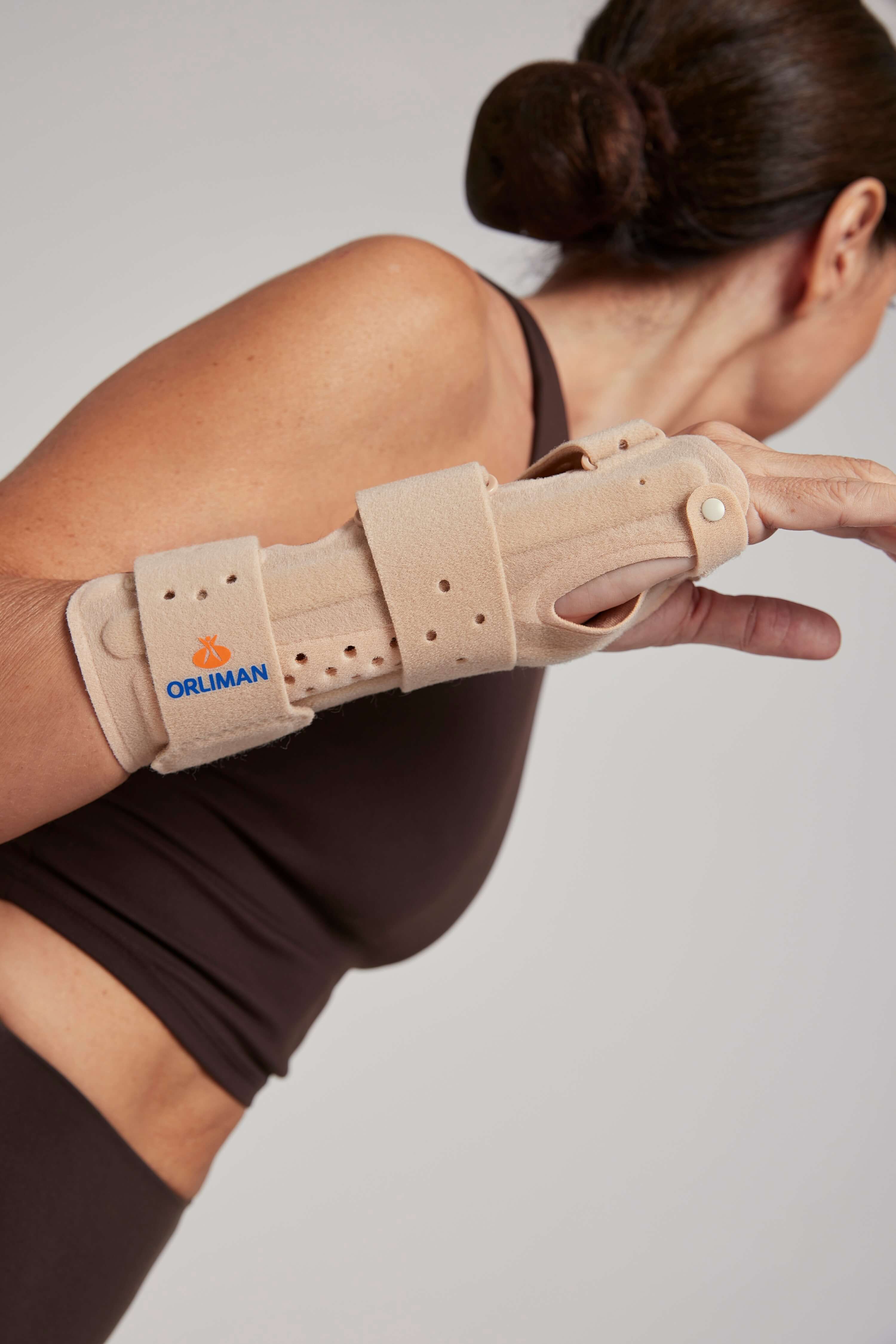 - Ортез фиксируется широкими лентами на предплечье и в области лучезапястного сустава. Дополнительно подгоняется при помощи застежек на ладони.