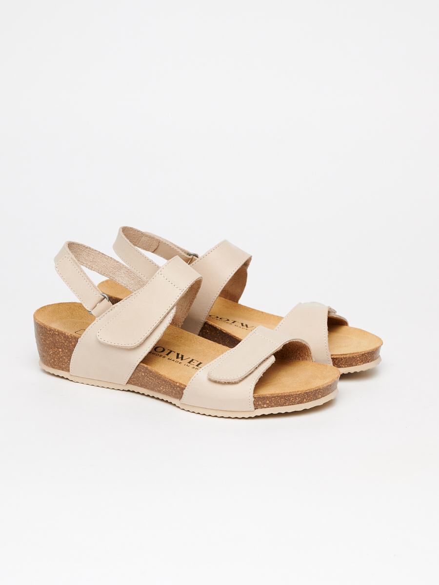 Бежевый - отличная база для проявления фантазии: и по многовариантности сочетаний с другими цветами, и по огромному количеству оттенков, иногда весьма оригинальных и смелых. Босоножки FASHION линии на устойчивой танкетке из пробко-латексной смеси, обеспечивающей хорошую амортизацию и снижающей ударную нагрузку на суставы. Физиологичная высота танкетки 4 см гарантирует правильное распределение нагрузки на стопы и суставы при ходьбе. Небольшие бортики по краям стелечного ложа фиксируют стопу, не давая ей смещаться и предотвращая возможные растяжения и вывихи. Удобный пяточный ремешок и застежки на липучке гарантируют надежную фиксацию. Стелька дополнена мягкой вставкой "carbono", которая дарит мягкость и особый комфорт.